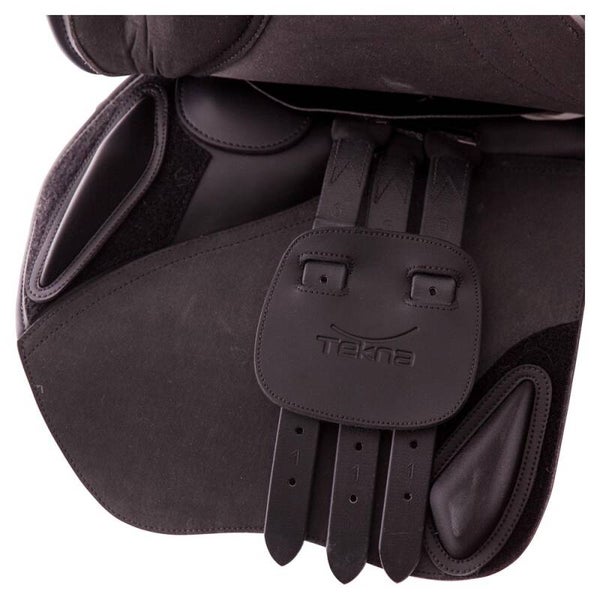 Dit lichtgewicht springzadel, gemaakt van synthetisch leder, is ontworpen voor zowel springen als allround. Het zadel zorgt voor een optimale zit voor de ruiter. De stevige knie- en kuitwrongen zorgen voor een goede beenligging voor de gebruiker. De knie- en kuitwrongen zijn afneembaar en verwisselbaar en ook de singelstoten zijn makkelijk vervangbaar. Door de vlakke zit heeft u een goed contact met de paardenrug. Het brede kussenkanaal zorgt ervoor dat de ruggengraat van het paard vrij blijft. De basis van dit zadel bestaat uit een Quik-Change™ zadelboom. De latex/wollen kussens kunnen aangepast worden aan de rug van het paard. Het zadel is overtrokken met het Quik-Clean™ materiaal. Het Tekna kopijzer is ook los verkrijgbaar in andere maten.