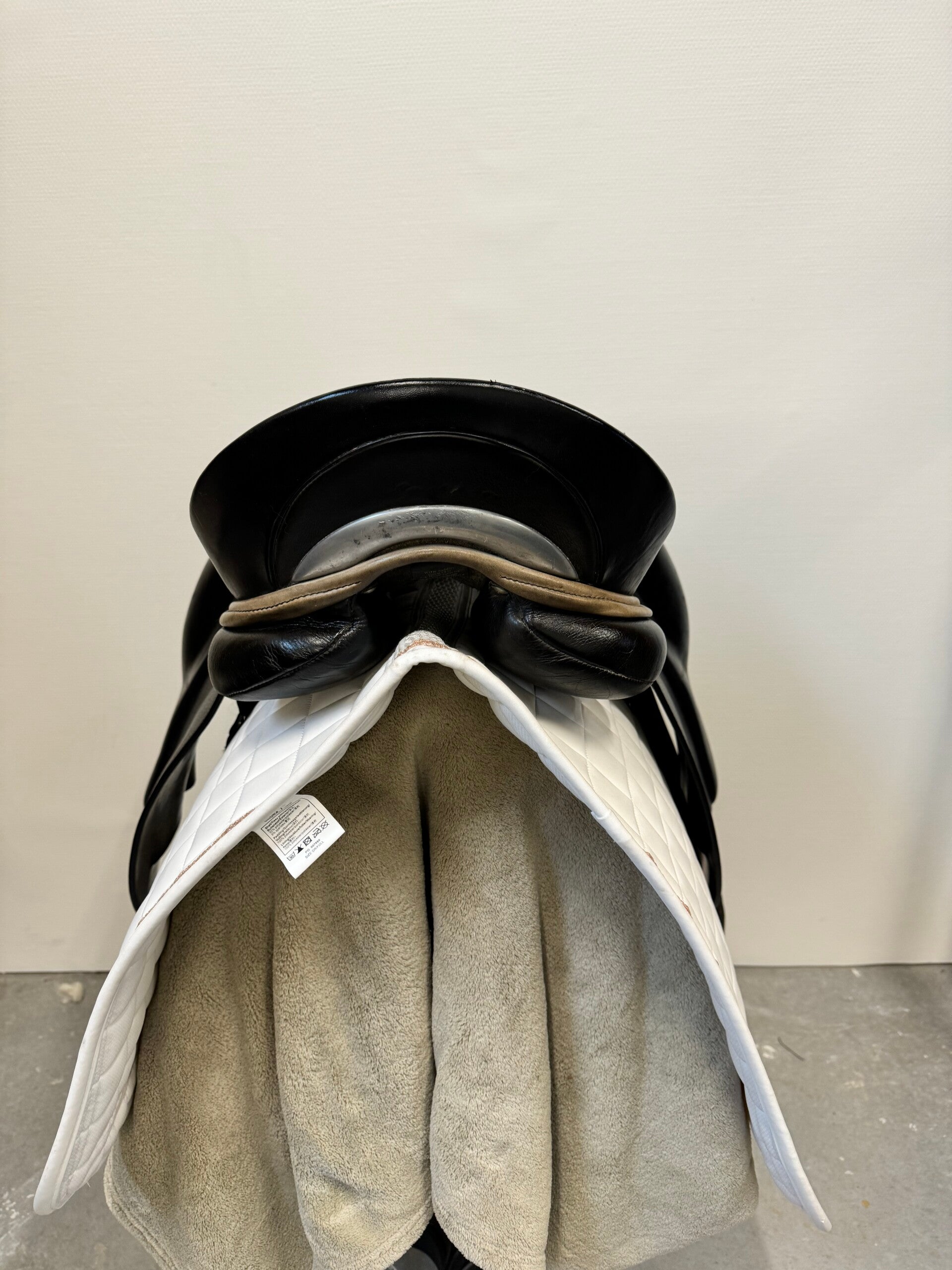 WoW dressuurzadel in nette staat. Zwart met grijze accenten.
