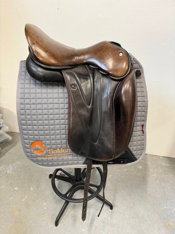Bruine zitting met zwarte bies. De oude maar hele fijne Resin Tree (semi curve) boom met een deep Seat (hele zachte zit). Maat 1 = 17 inch. VERKOCHT