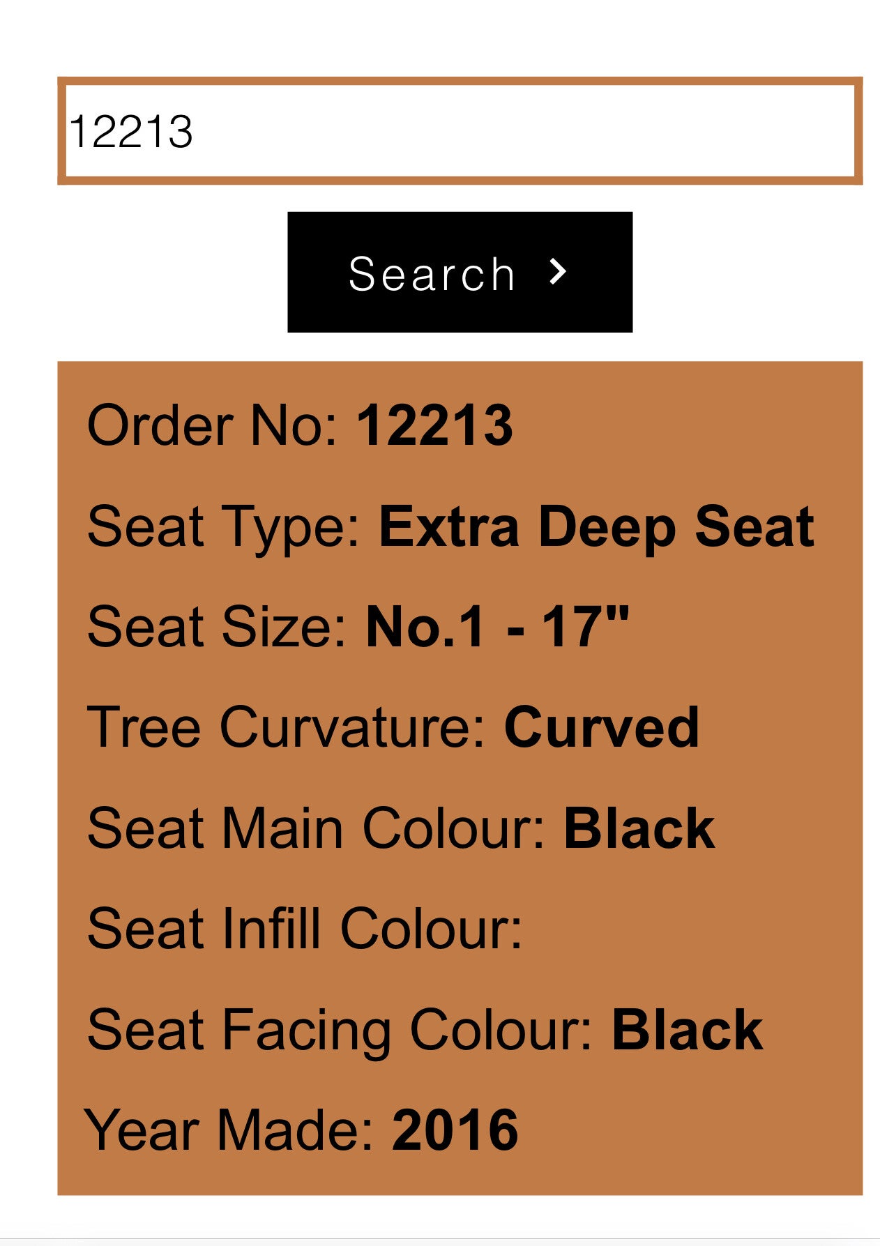WoW Seat size 1 (17 inch) Extra Deep Seat, curved tree. Productiejaar 2016